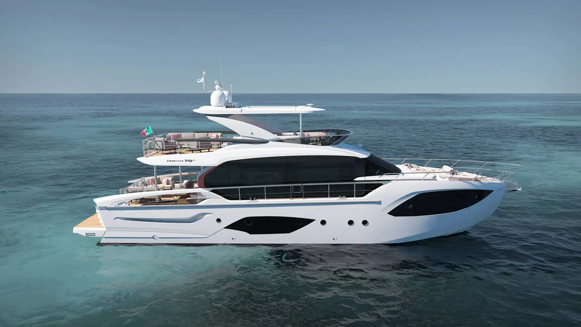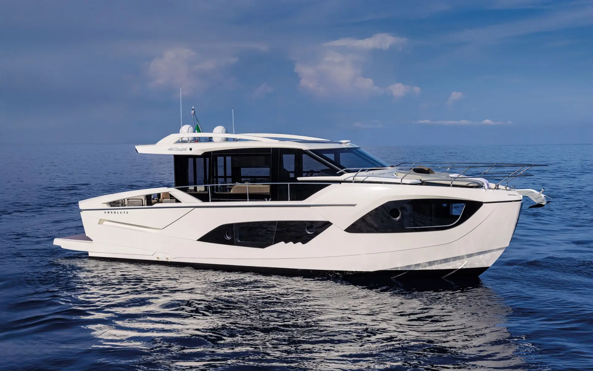 The strong personality of Absolute 56 FLY is expressed in its striking lines as well as in the interiors, featuring comfortable, refined and highly practical spaces.