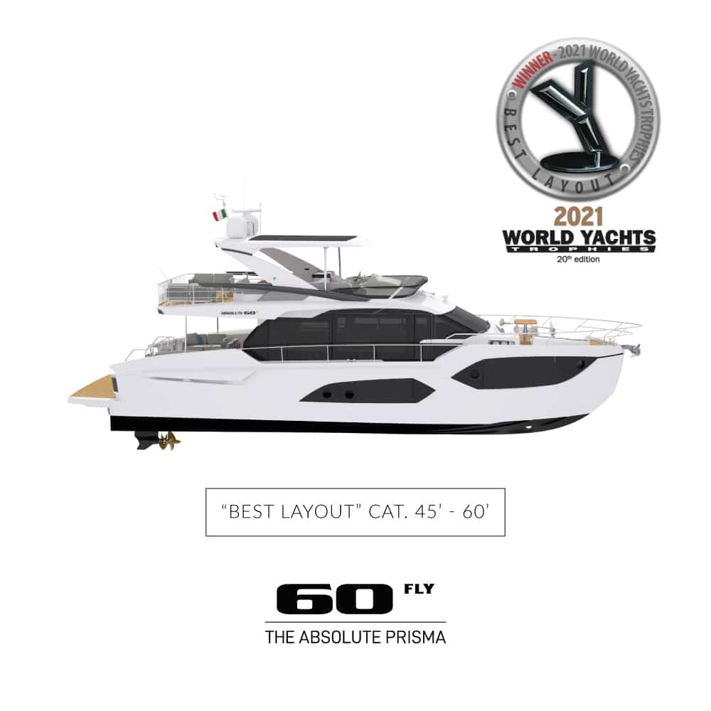 Confirming the extensive research and innovation that Absolute carried out over the past year, the 60 Fly received the award for Best Layout in the 45' to 60' category.
