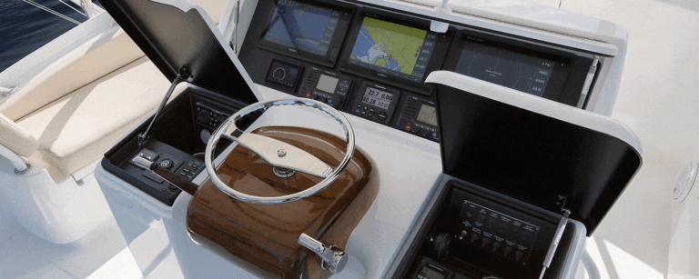 Impeccable Handling and Advanced Technology Aboard the All-New Princess V50 - Efficient Volvo Penta IPS650 engines provide top speeds in...