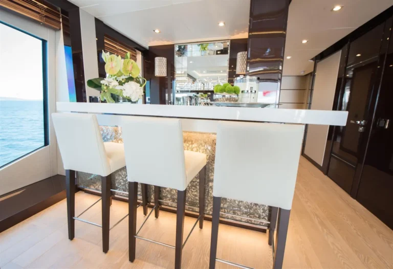 The 131 Yacht is one of the finest examples of contemporary superyacht building, expertly finished using the highest quality materials and techniques. The main deck features a lounge, separate dining area and full galley, while on the upper deck, you’ll find the sky lounge, cocktail bar and access to the beautiful Skydeck. As impressive out in open water as it is in the marina, this stunning model is a leisure marine marvel.