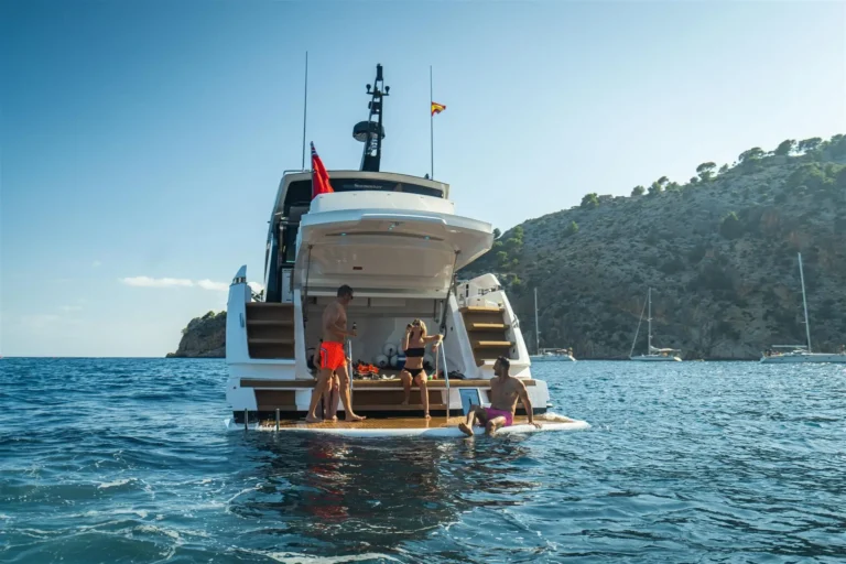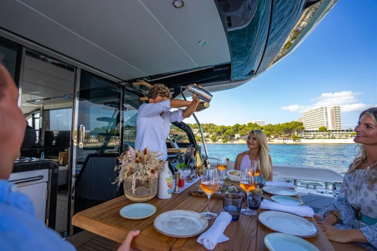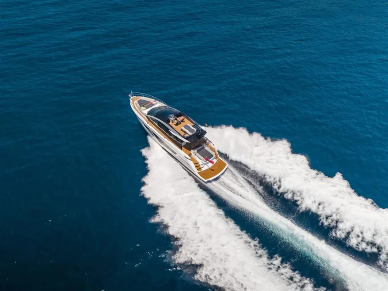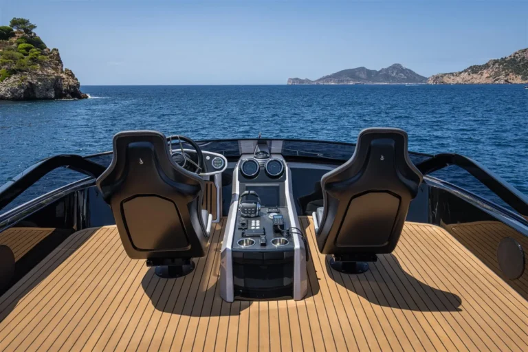 Take your Sport Yacht to new heights by carrying the tender on the bathing platform and reconfiguring the vacated space as a dedicated ‘Beach Club’ – with direct sea access, bar, fridge, BBQ and free-standing seating. The perfect area for those happiest close to the water. With speeds of up to 35 knots, the 65 Sport Yacht cuts an equally impressive figure on the open water. Altogether, the experience is one of pure adrenaline, akin to driving a high-performance convertible supercar.