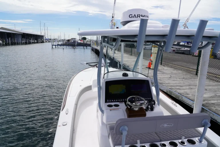 And it’s a true delight to ride. An 18-degree deadrise and a relatively flat hull bottom with a draft of just 22-inches when the engines are down gives this boat the ability to glide over seagrass meadows and to scour those difficult to reach backwaters in search of prey. But this Michael Peters hull also features a Stepped-V ventilated tunnel running surface making it a true flier as you head away from land to vaunt the coastal saltwater swells.