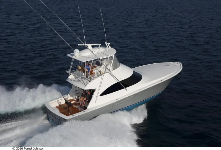 Building a better boat every day tells the story of each Viking yacht as it cruises along its evolutionary trail. When the first Viking 48 Convertible was launched in 1985 it was a powerful introduction that quickly went to the head of the fleet. Early models launched with J & T turbo-charged 6V92TA Detroit Diesels and were soon followed with 8V92TA making waves as the fastest in its class. The interior featured man-sized appointments, with a fashion plate of luxury details, rich teak joinery and opulent designer furnishings. This was a popular boat and we built it steadily for five years.