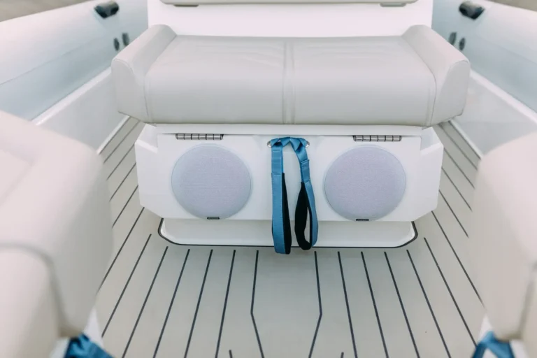 When at sea, the seat can fold down to accommodate a waterski pole.